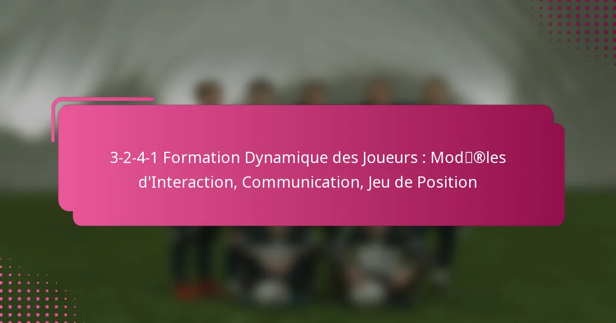 Qu'est-ce que la formation 3-2-4-1 au football ? Comment les joueurs interagissent-ils dans la formation 3-2-4-1 ? Quelles sont les stratégies de communication utilisées dans la formation 3-2-4-1 ? Comment…